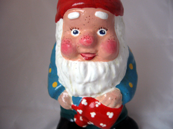 Ein traditioneller Gartenzwerg mit weißem Bart und Gießkanne in der Hand. Wasserfest und Garten-geeignet